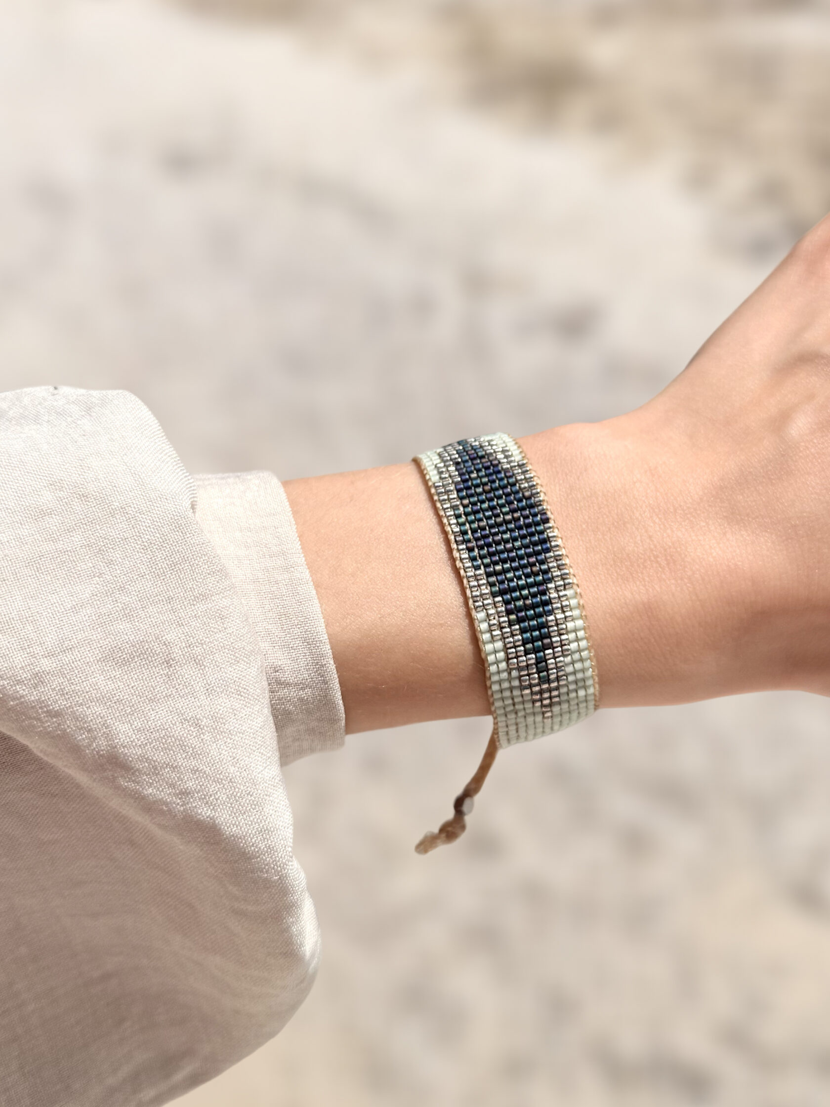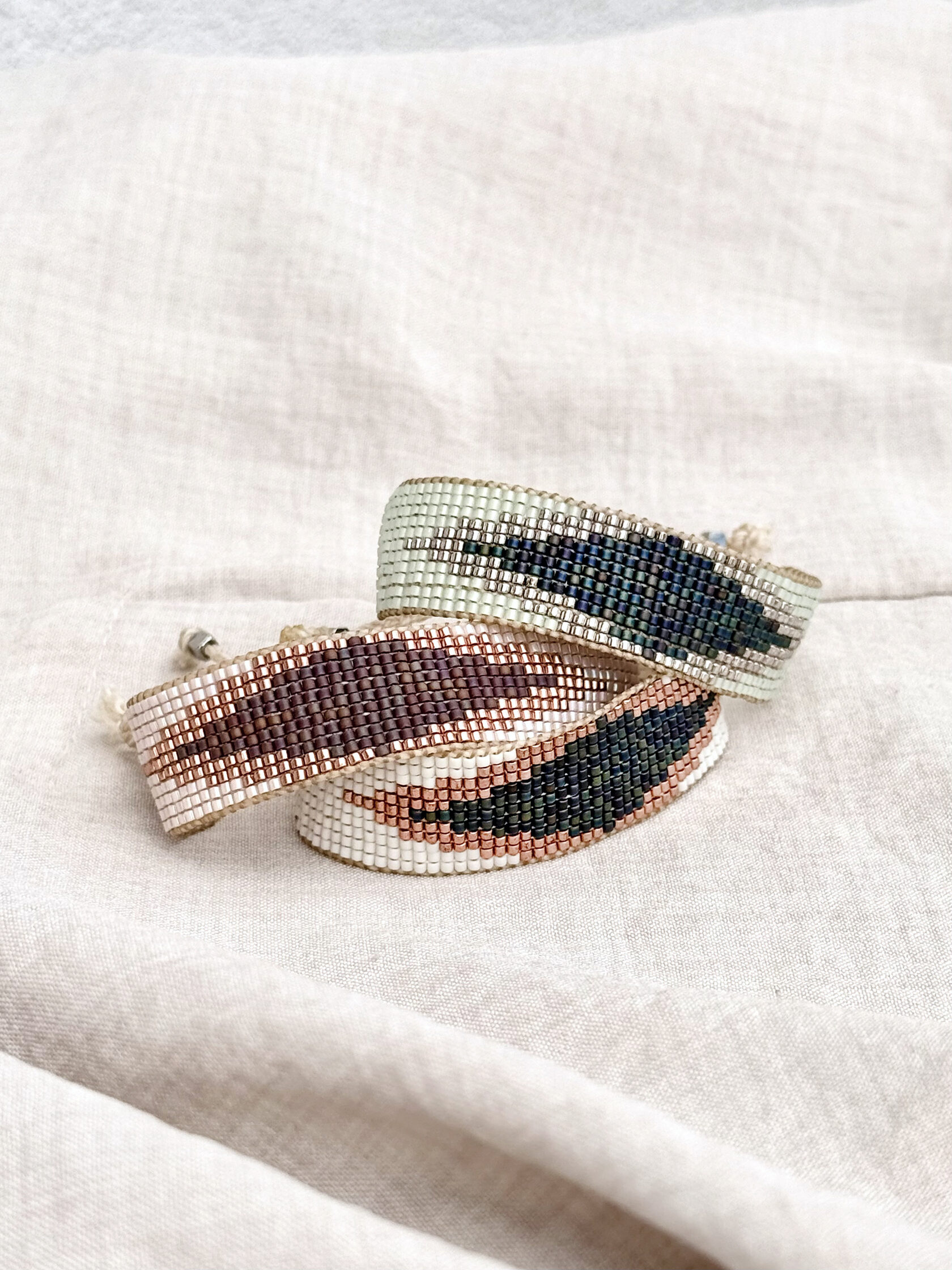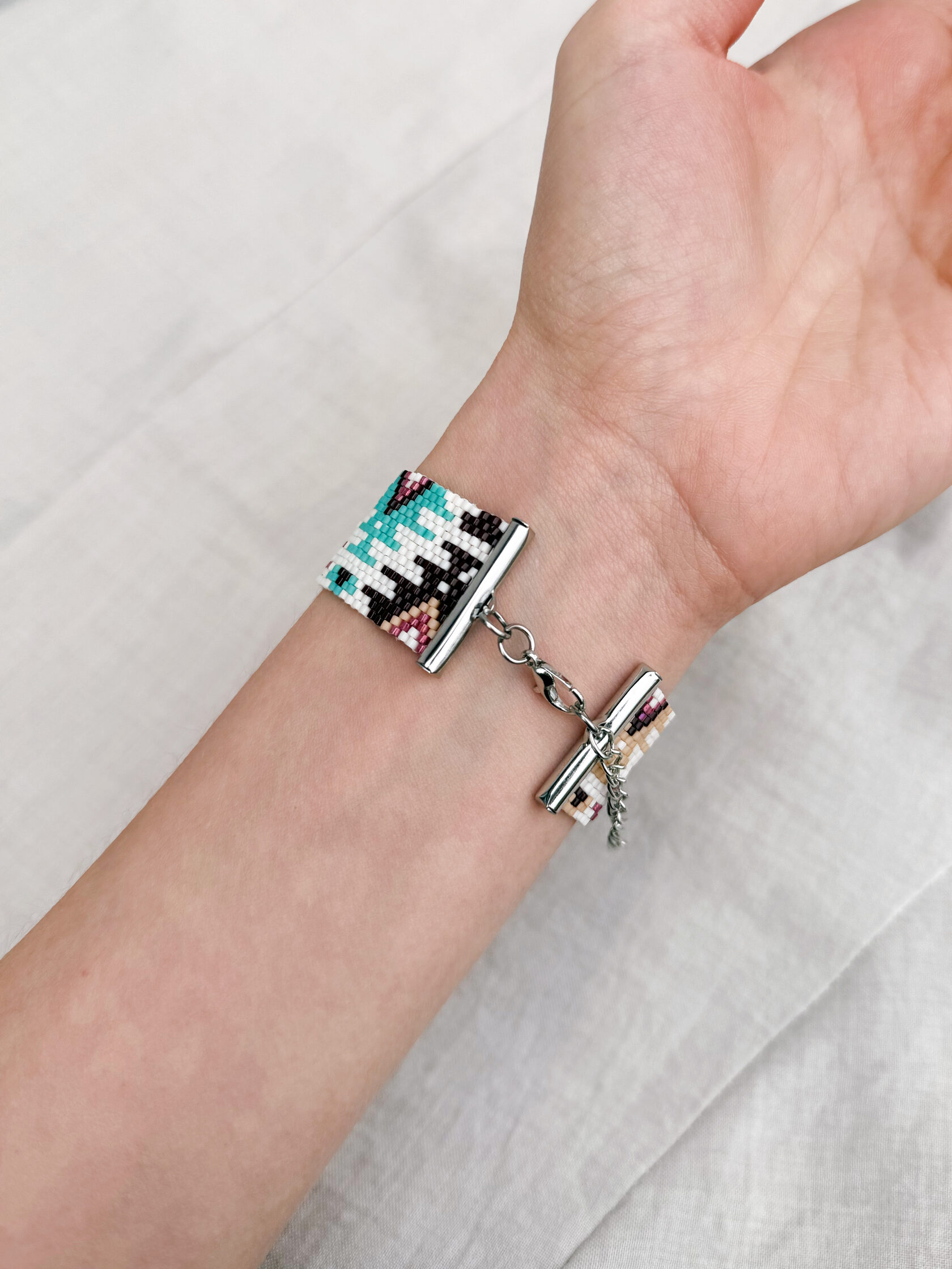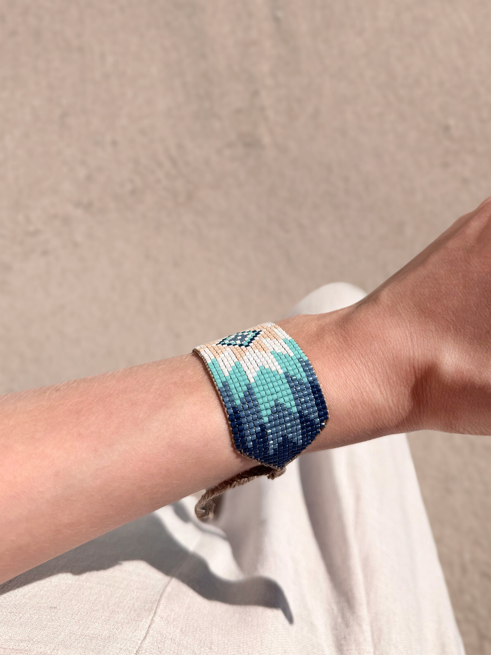 This bracelet inspired by ethnic art of Quechua people living in the Andes. Colors that refer to light alpaca wool, Andean minerals, and lush high-altitude grasses reflect their deep connection to nature and the earth.