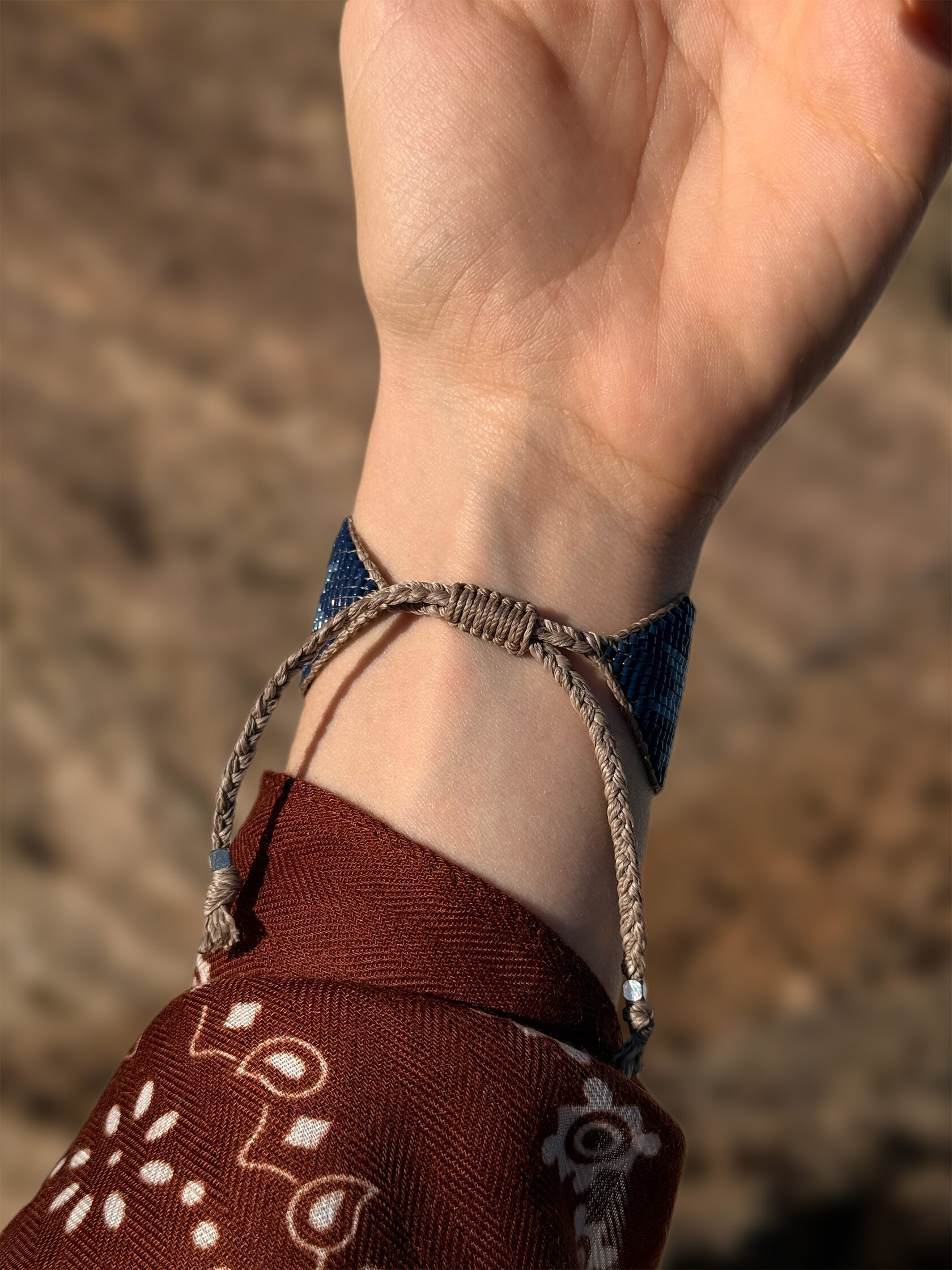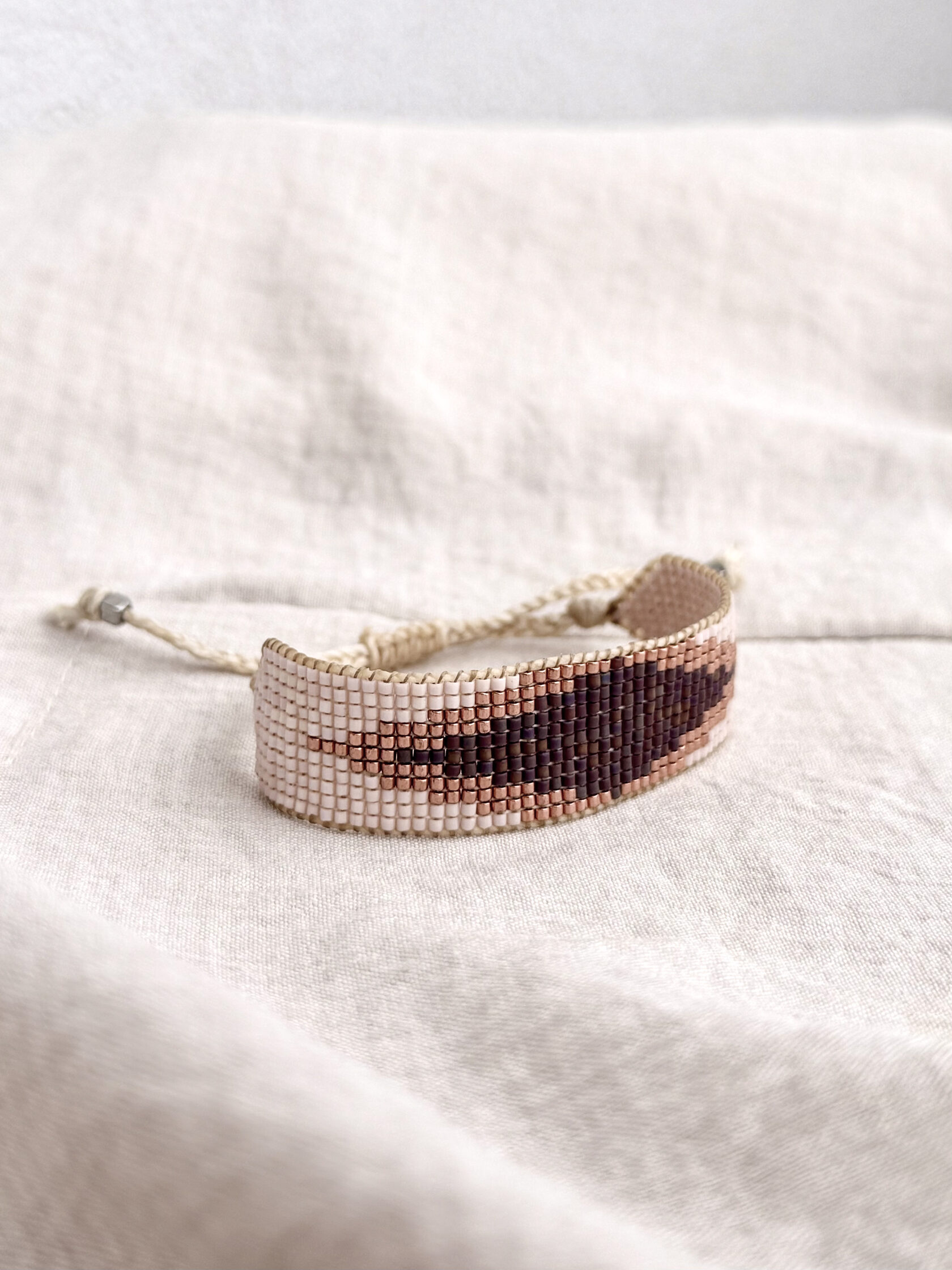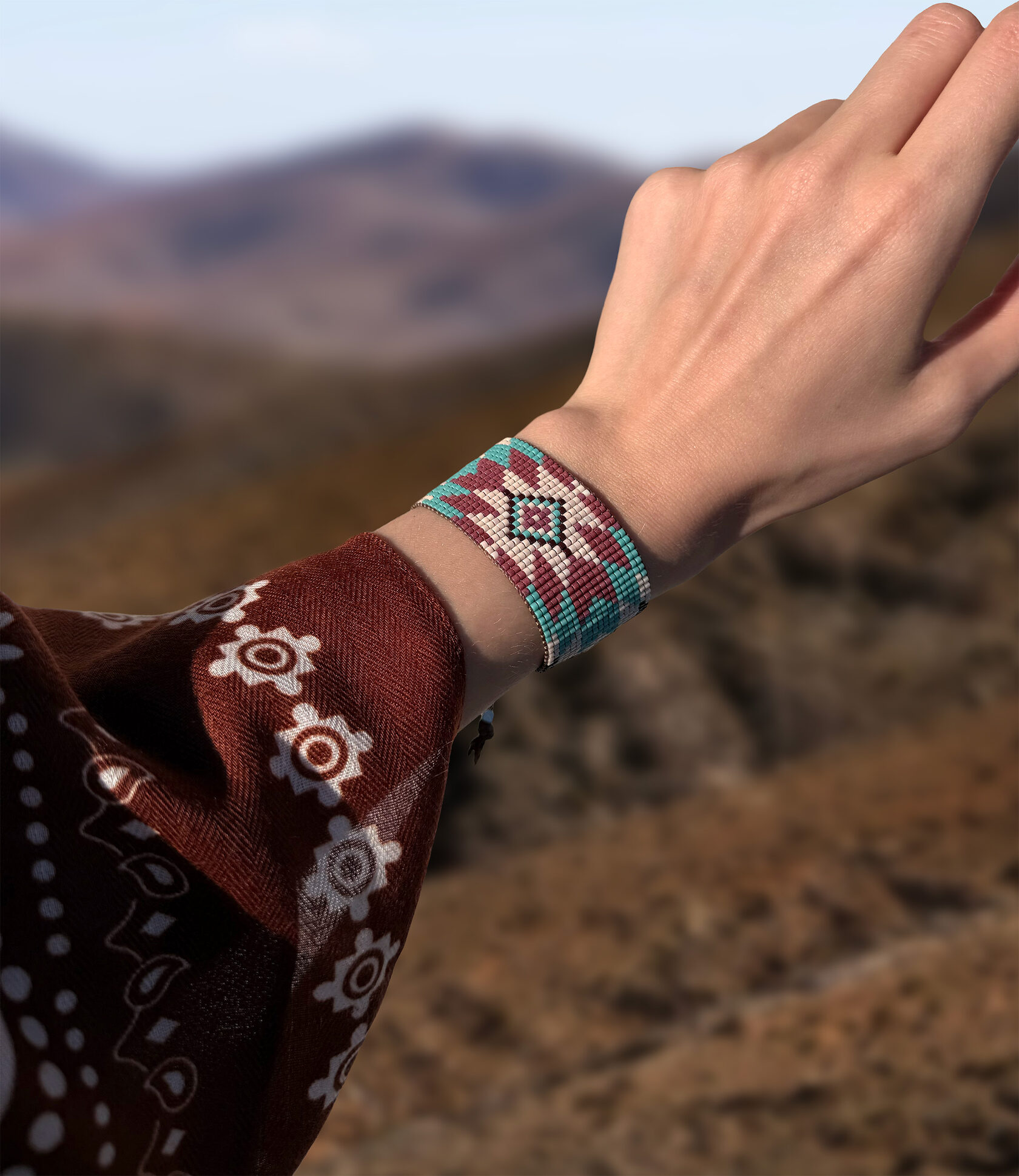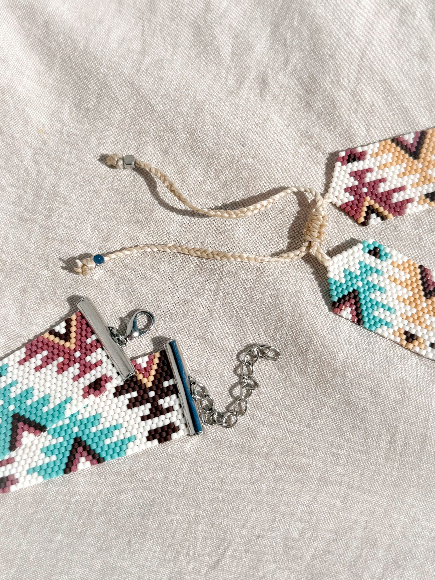 This bracelet inspired by ethnic art of Quechua people living in the Andes. Colors that refer to light alpaca wool, Andean minerals, and lush high-altitude grasses reflect their deep connection to nature and the earth.
