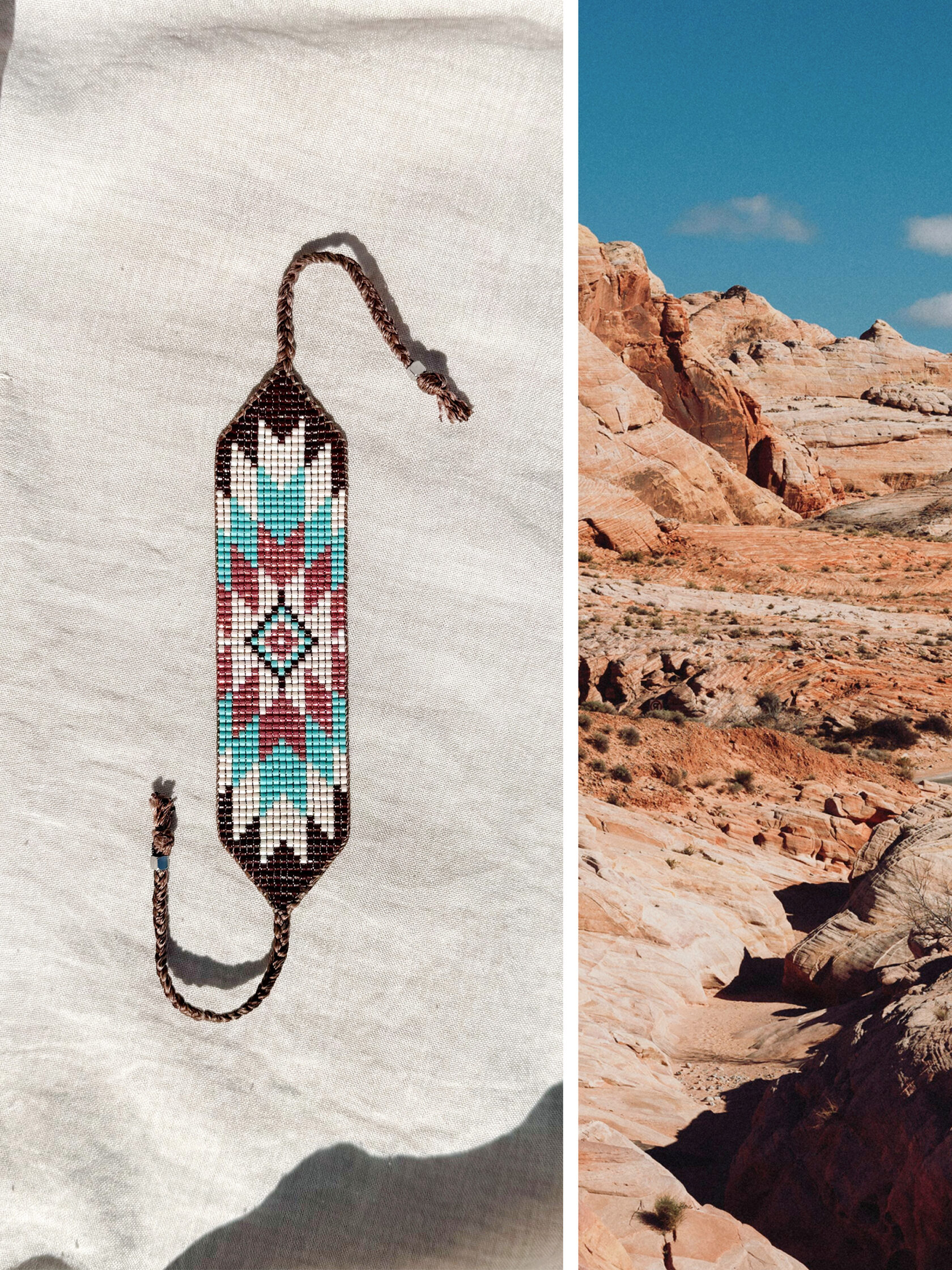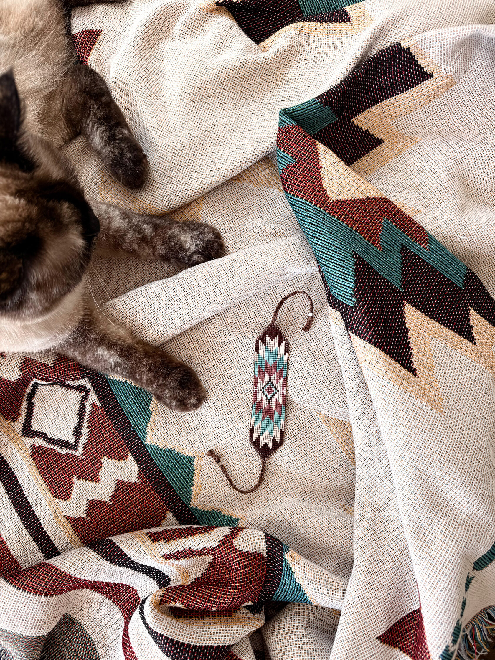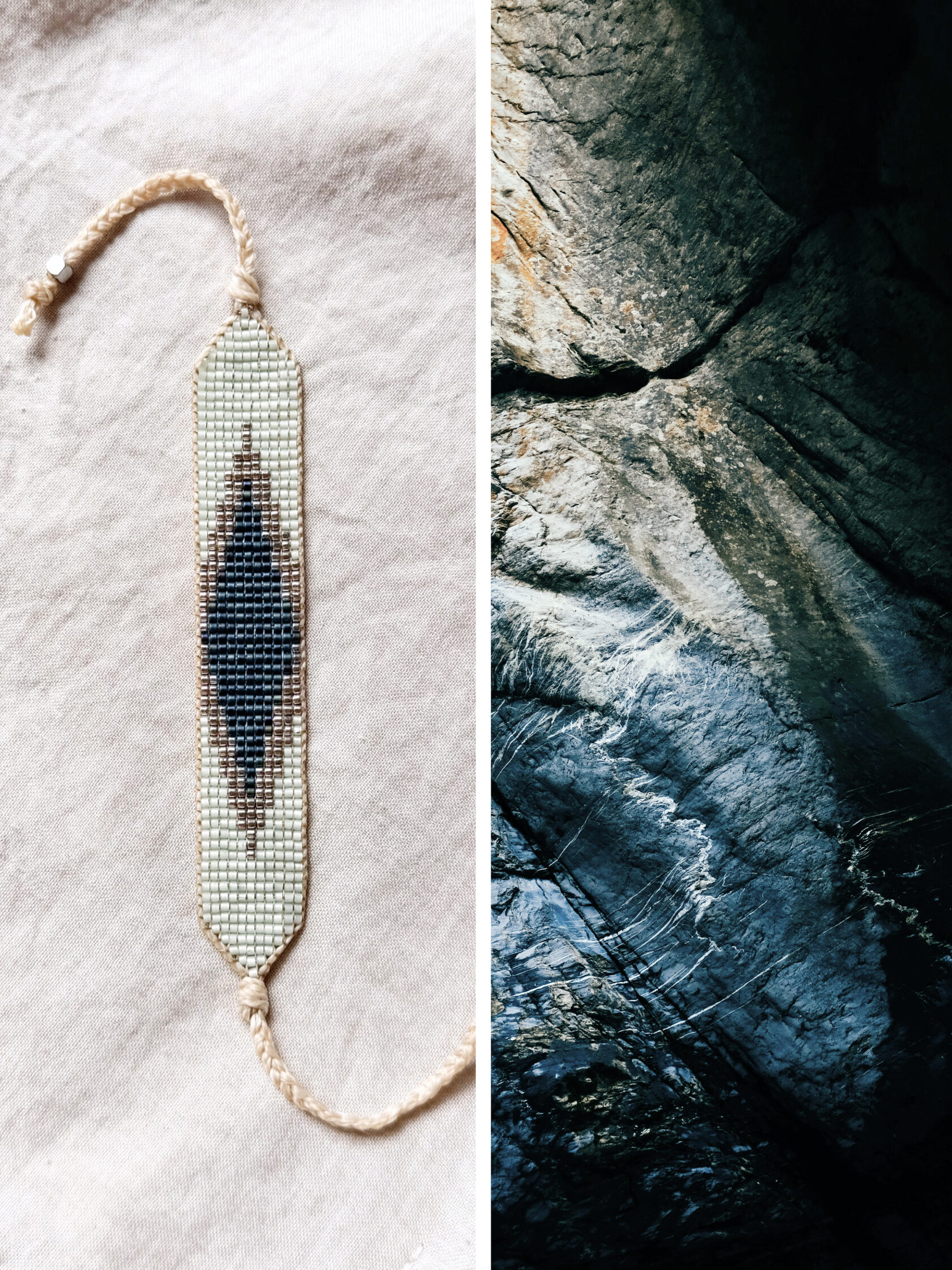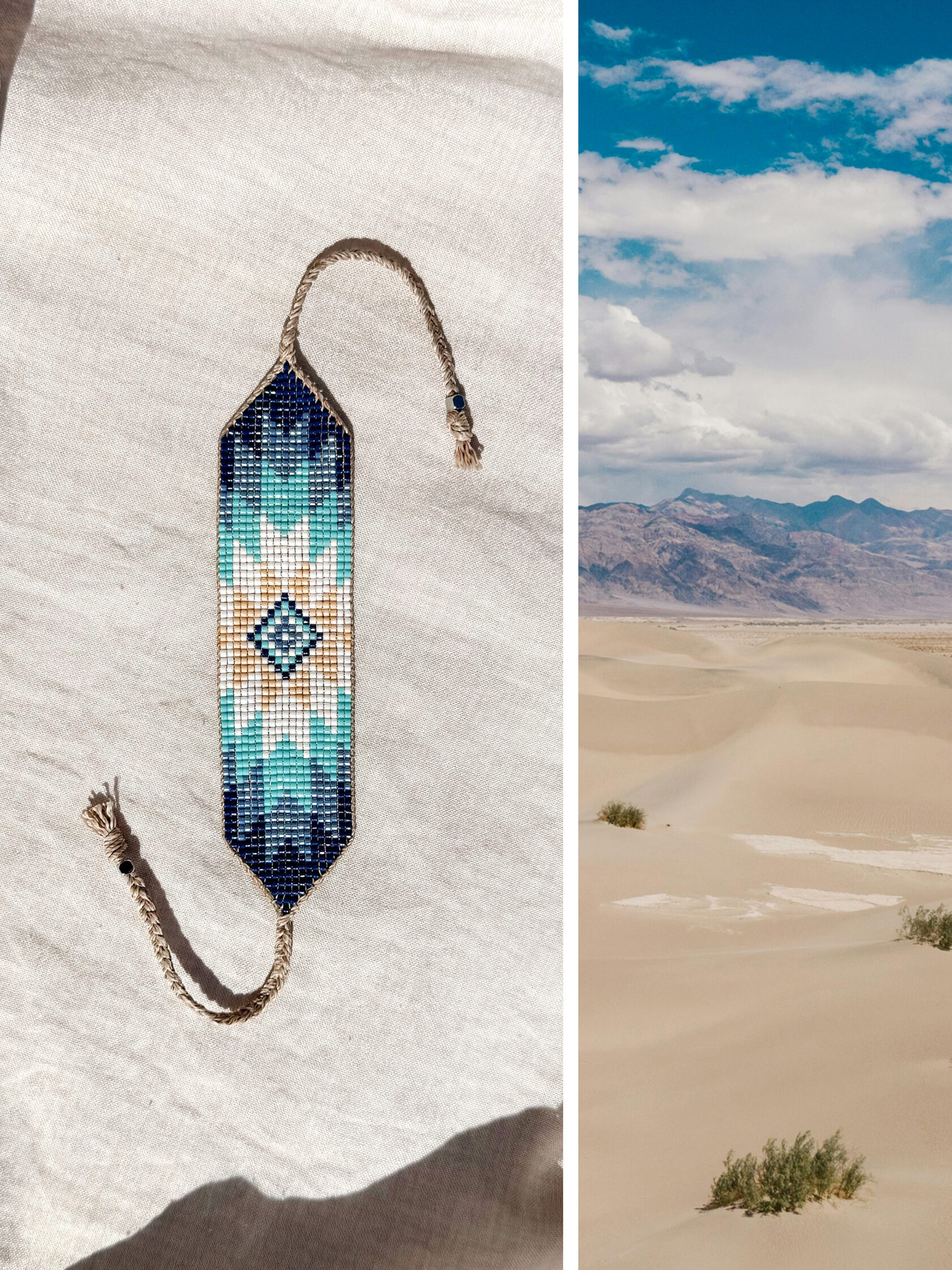 This bracelet inspired by ethnic art of Quechua people living in the Andes. Colors that refer to light alpaca wool, Andean minerals, and lush high-altitude grasses reflect their deep connection to nature and the earth.