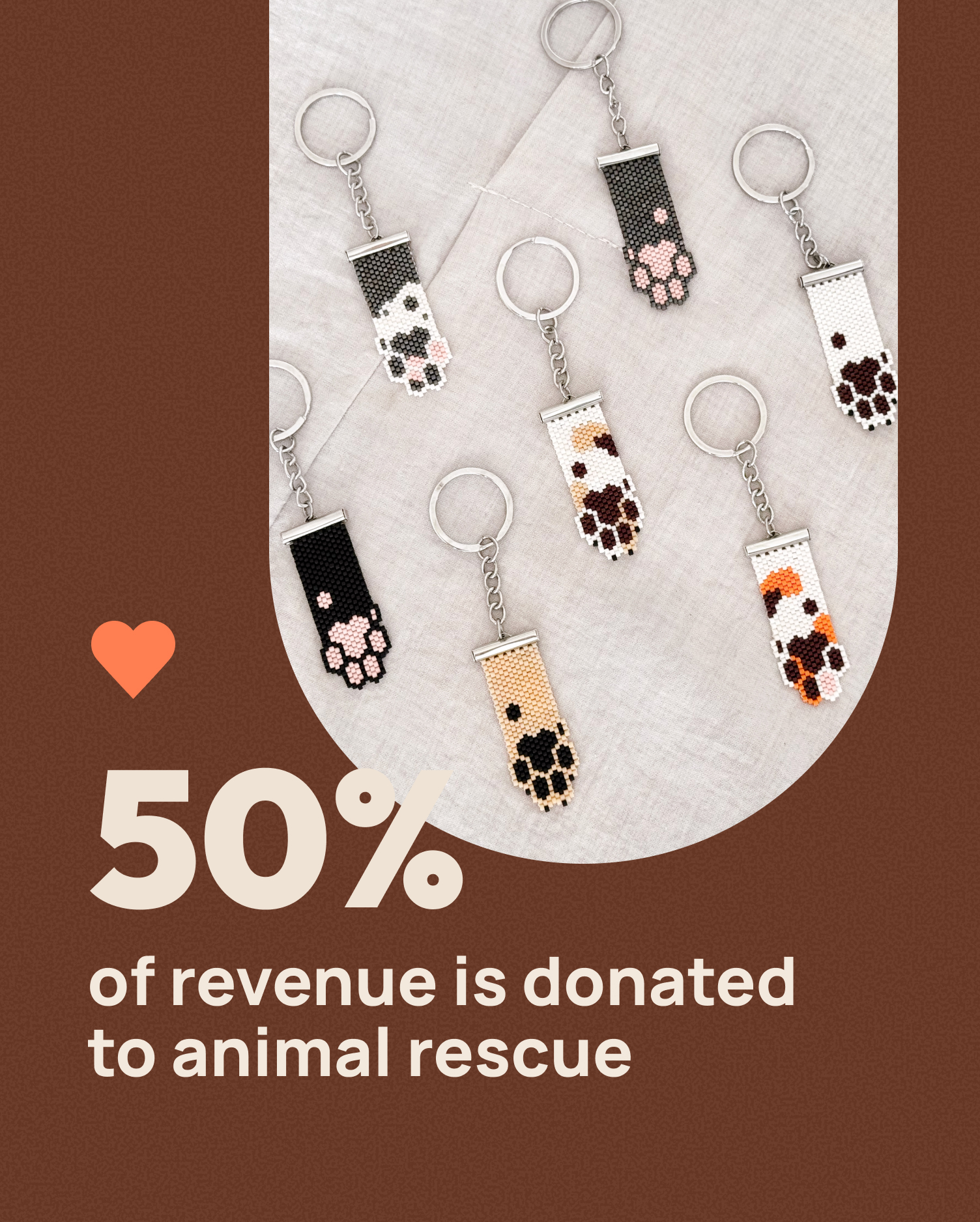 50% of the revenue is donated to animal rescue. 🐾 All of these paws were crafted in collaboration with PetConnect, foundation that rescues stray animals and finds them homes. The money goes towards food, shelter, and veterinary care for stray cats and dogs in Serbia.