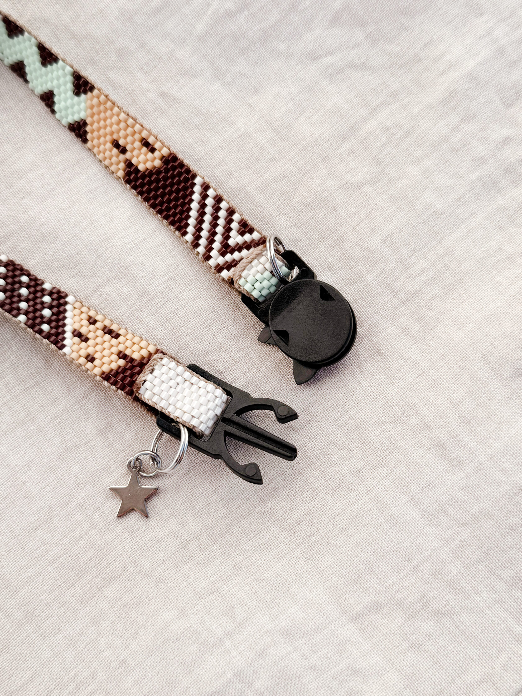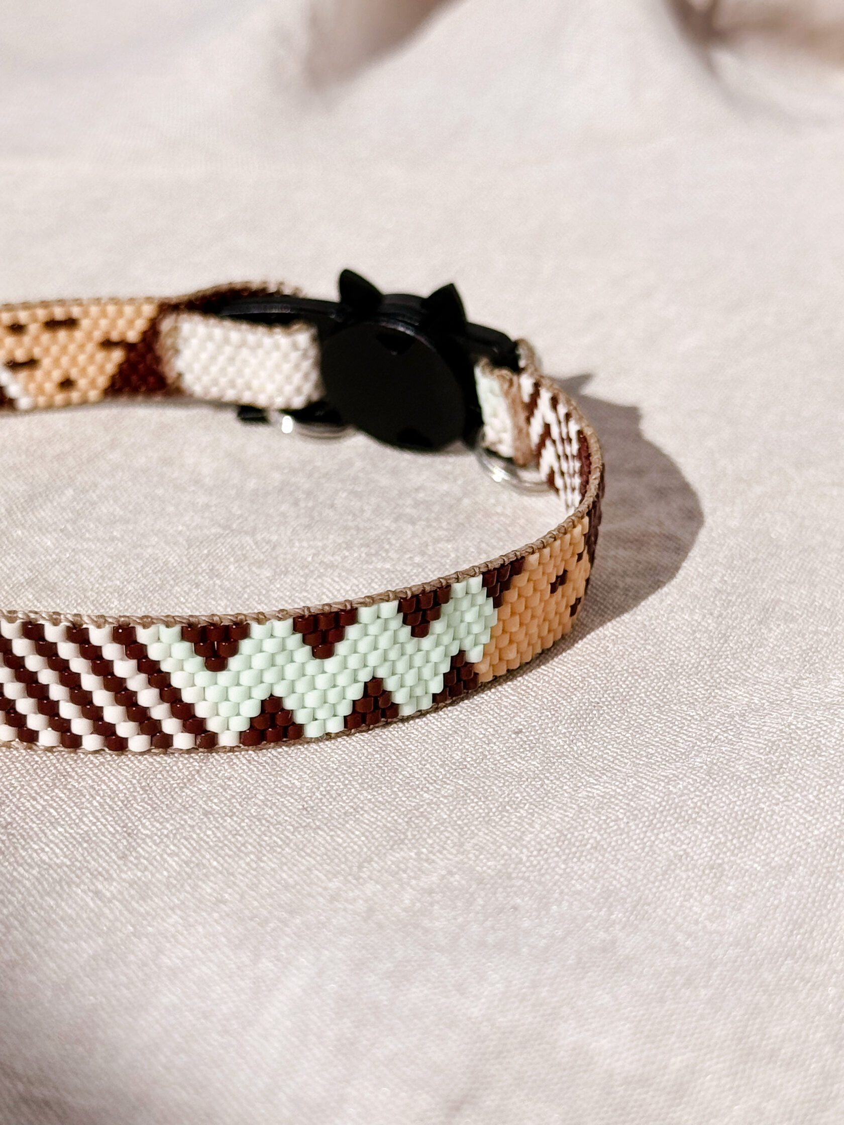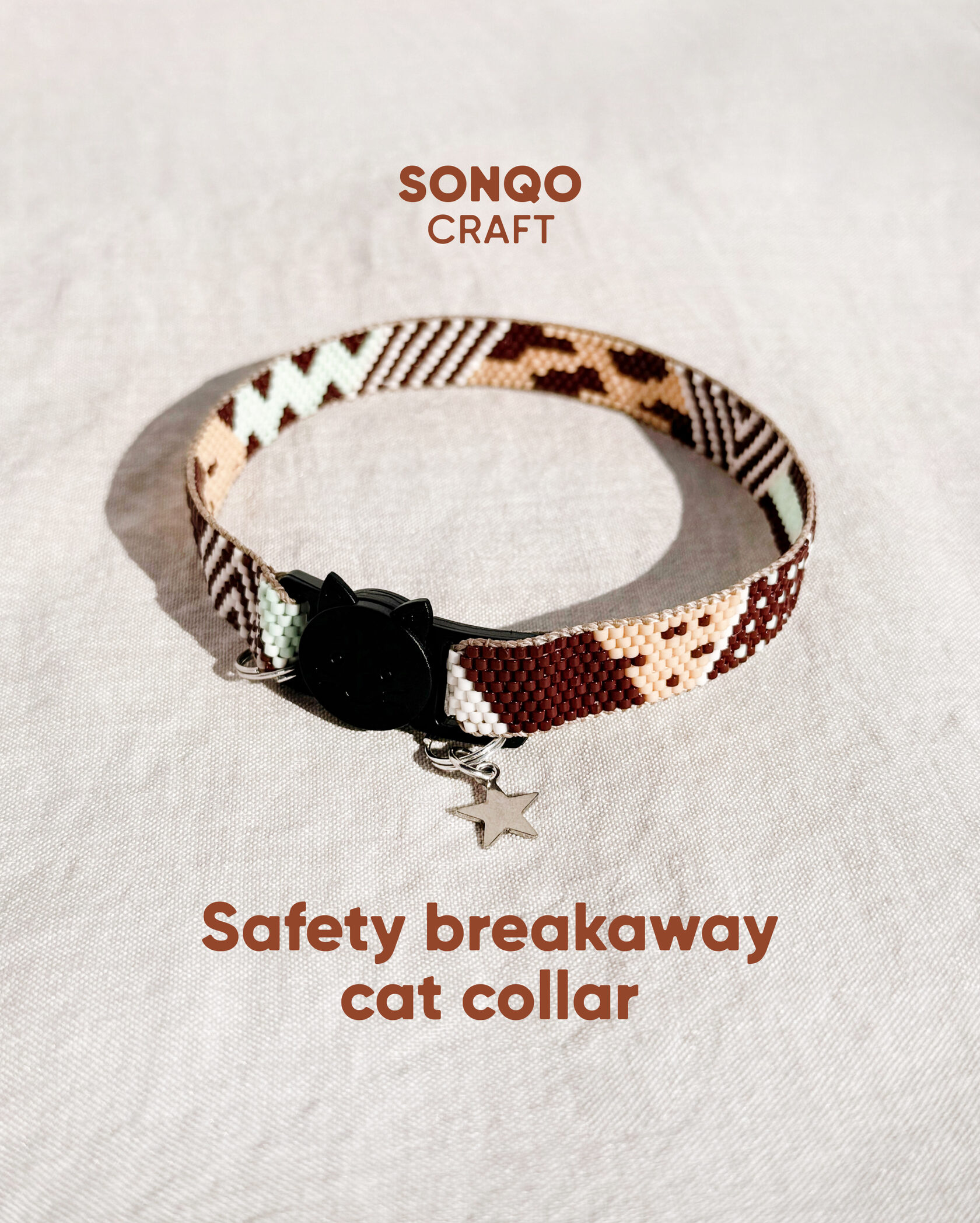 This collar is handmade from glass beads using mosaic technique and reinforced with waxed thread to prevent stretching. It features a breakaway clasp. The collar is craft to individual measurements and can use other colors according to your preferences.