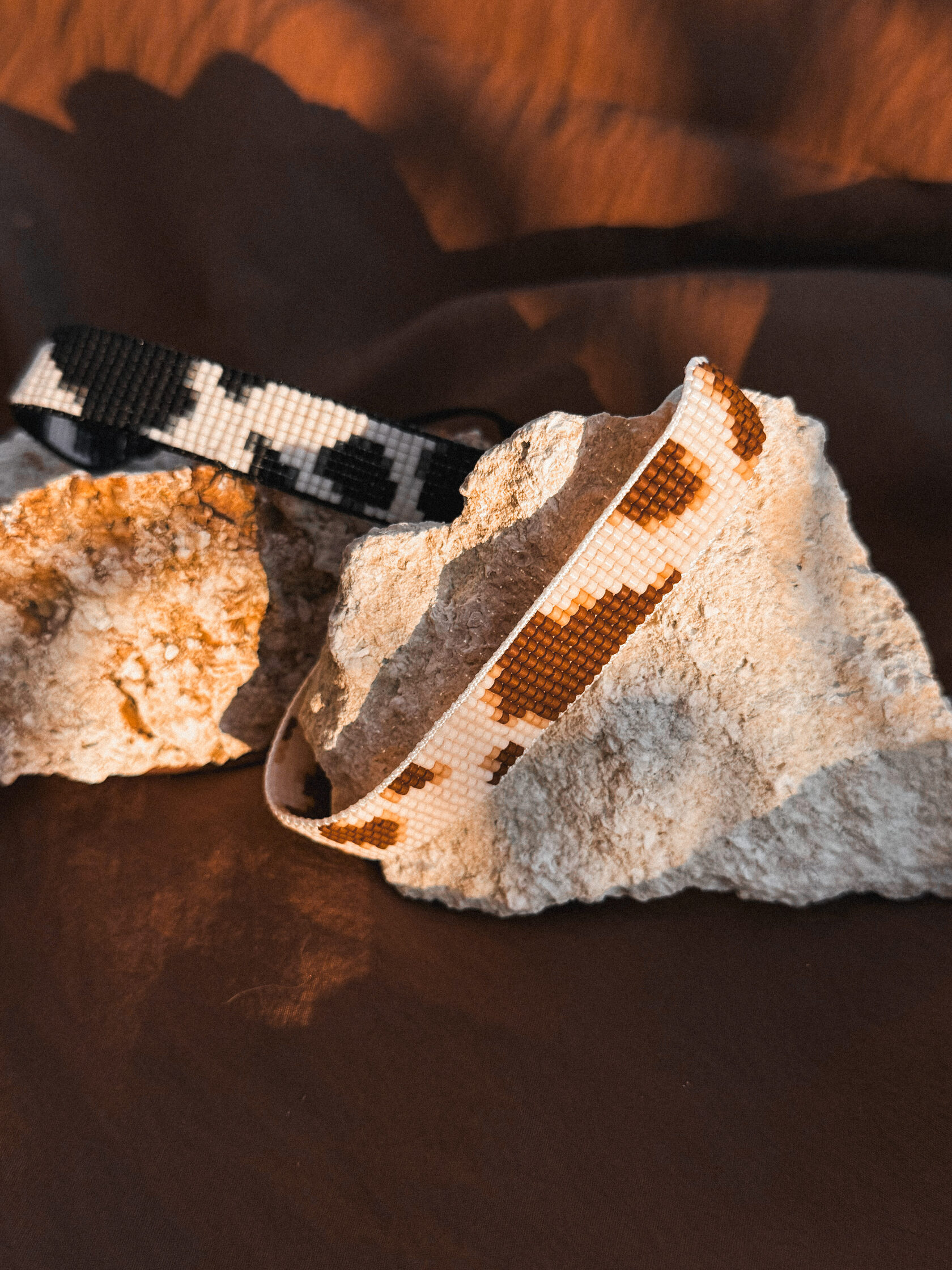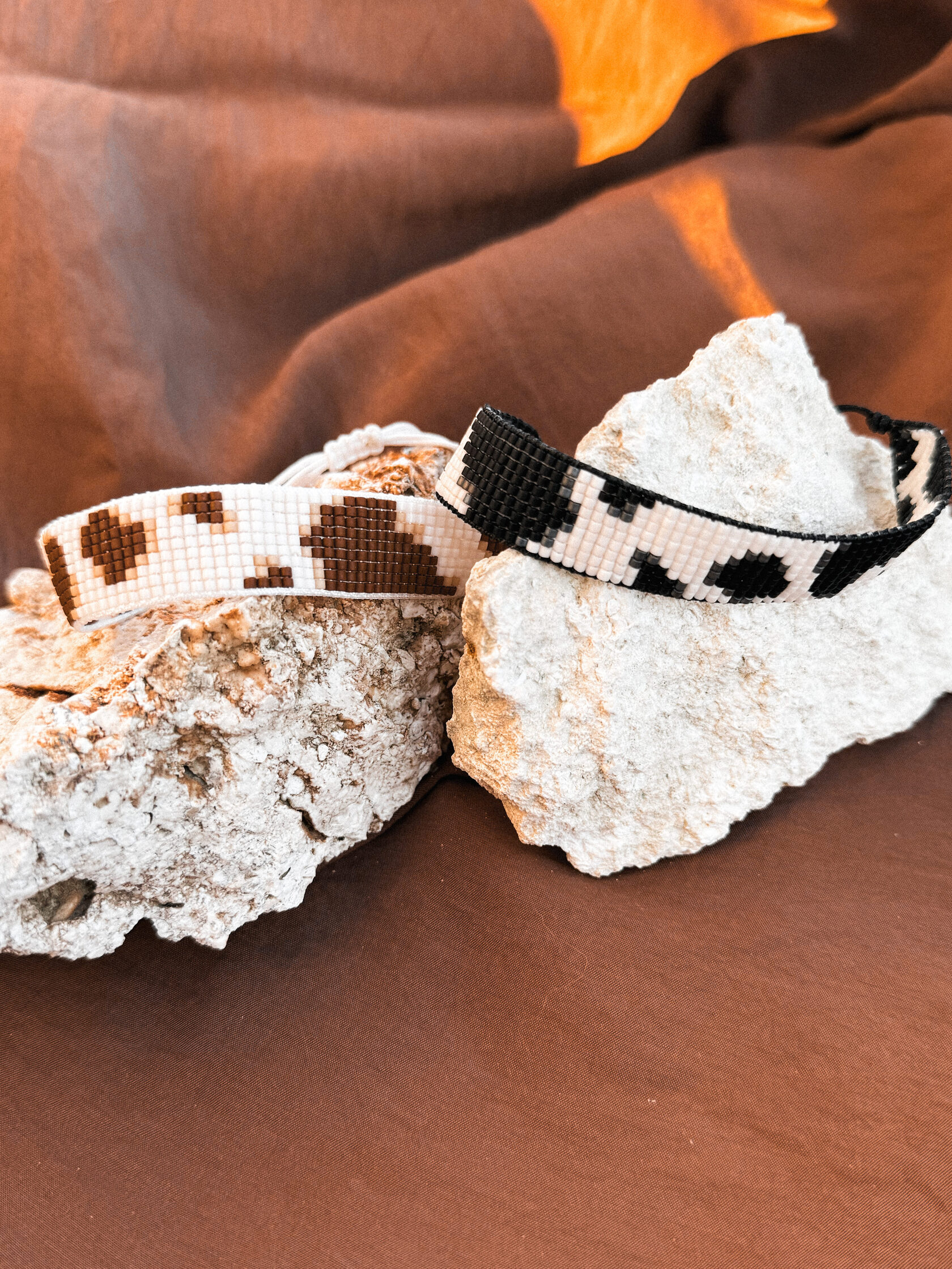 This bracelet is inspired by Navajo art from the southwestern region of North America and is handmade from high-quality glass beads using a loom weaving technique.
